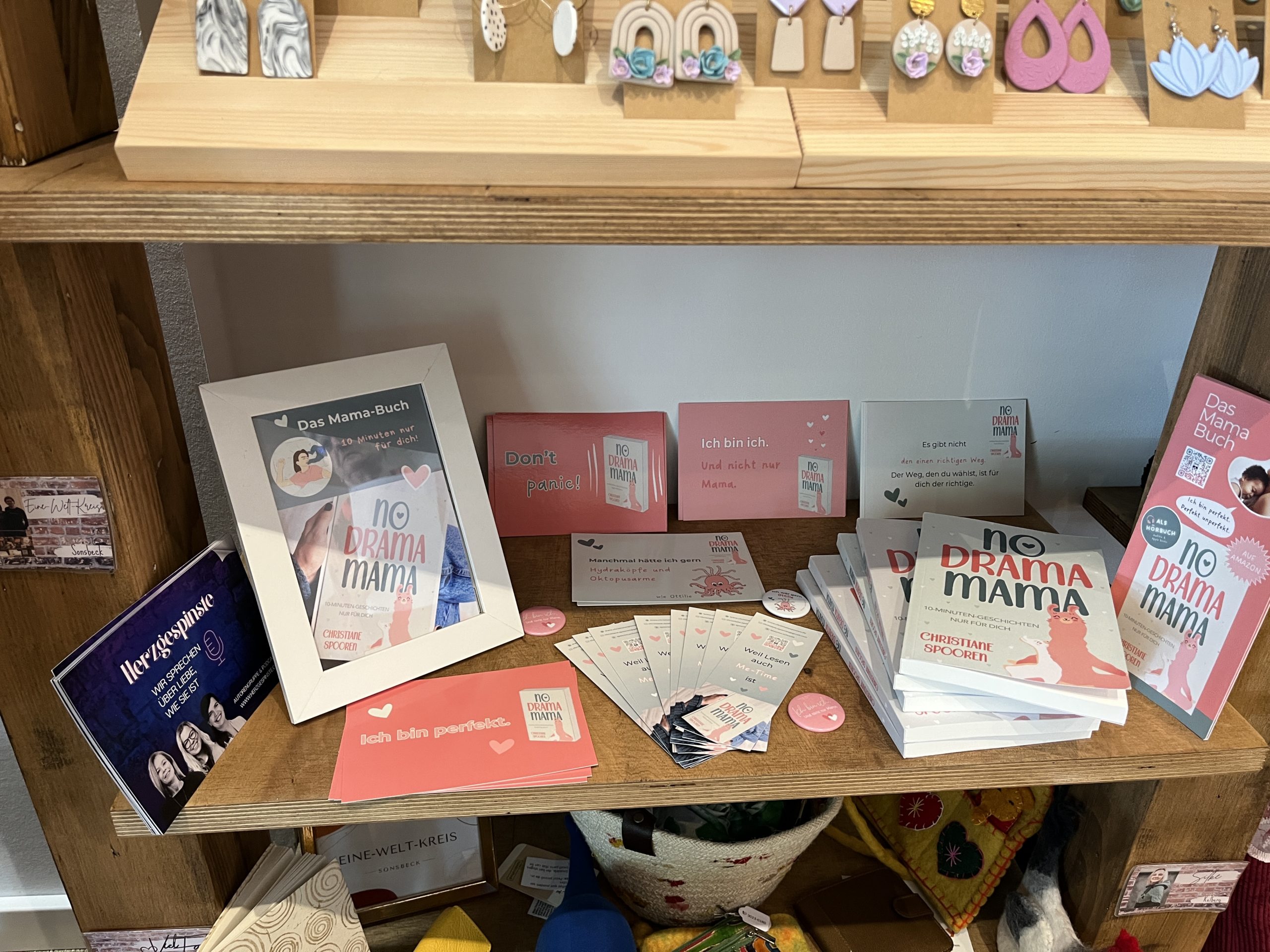 Ab sofort kannst du „No Drama Mama“ im Ladenlokal VielFach – dem Gemeinschaf(f)tswerk für Selbst- und Handgemachtes – entdecken: Hochstraße 45, 47665 Sonsbeck. Im Herbst 25 lese ich dort sogar live !